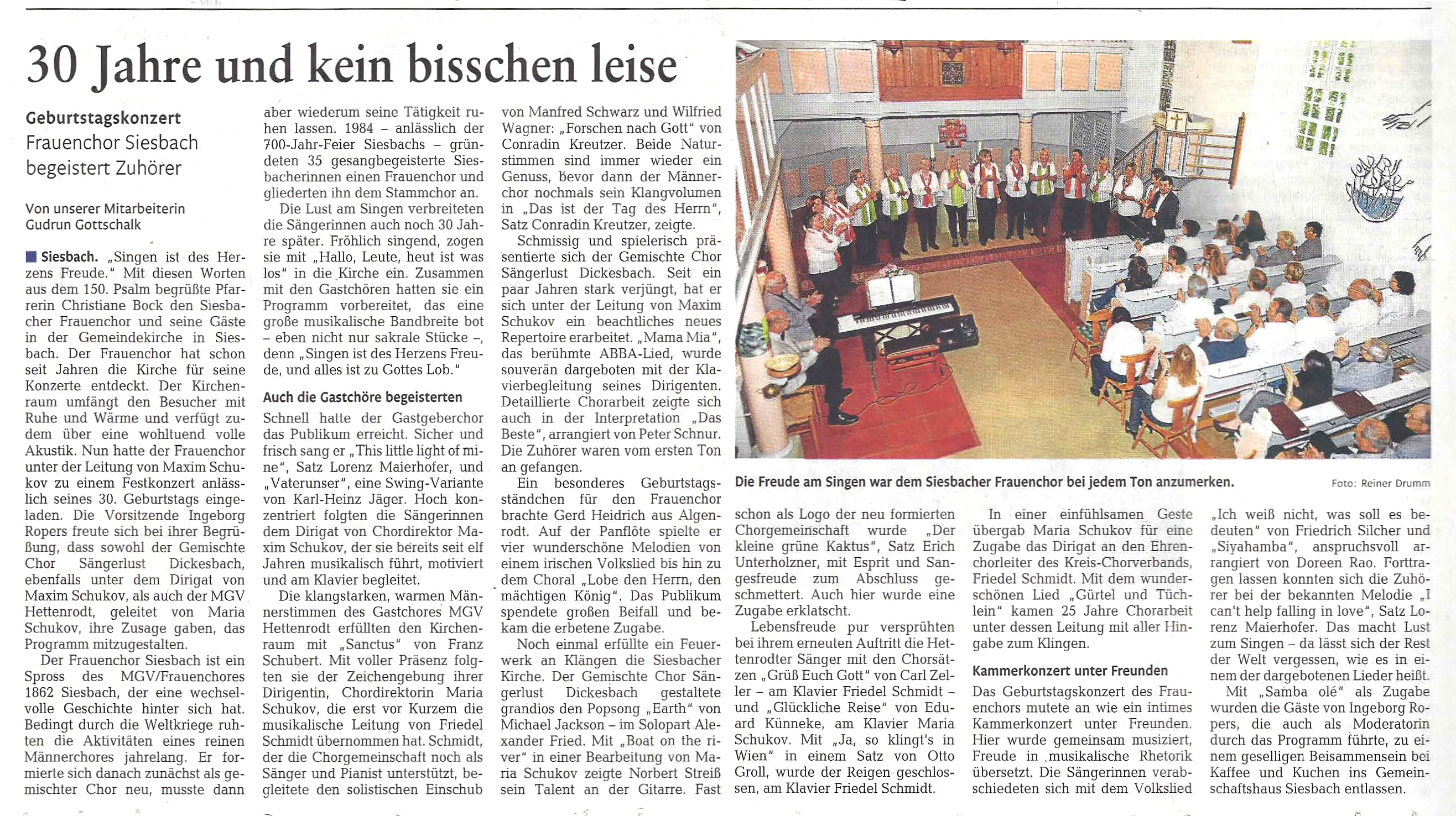 Bestehens des Vereins nach zwei Jahren. Der Frauenchor feierte 2009 mit 26