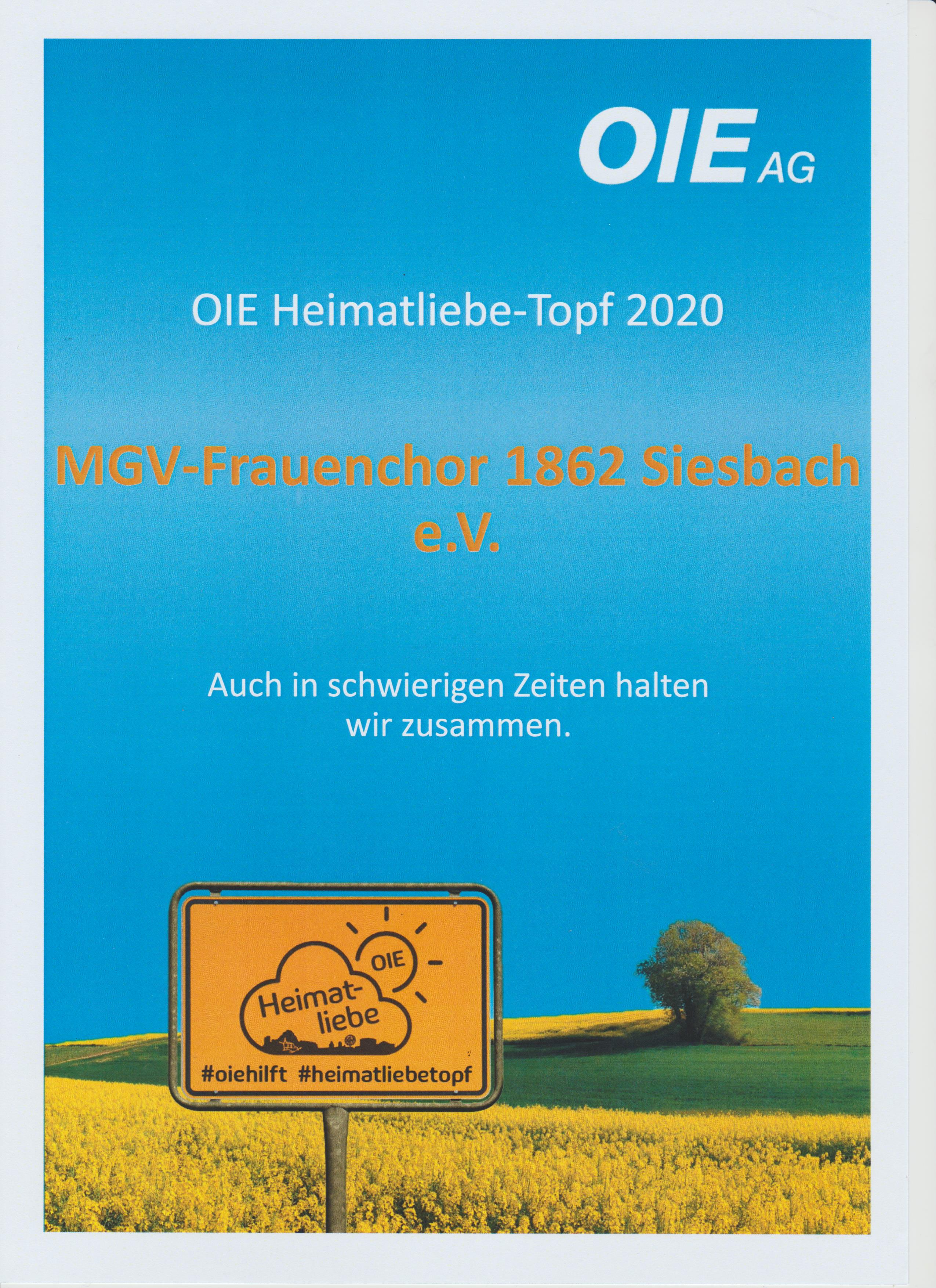 erfolgte der Eintrag in das Vereinsregister unter "MGV/Frauenchor 1862 Siesbach
